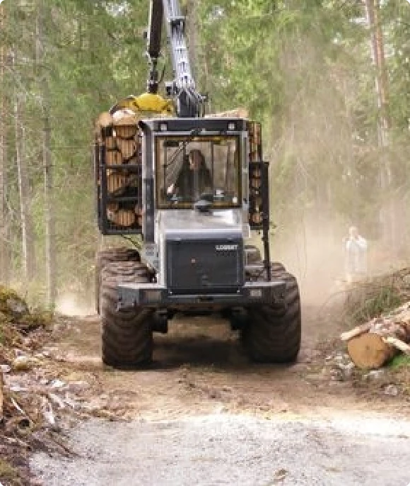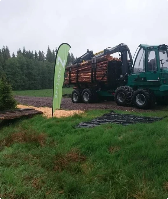 Våra stockmattor ger stabil bärighet även på mjuka underlag och myrmark, även för tunga maskiner.